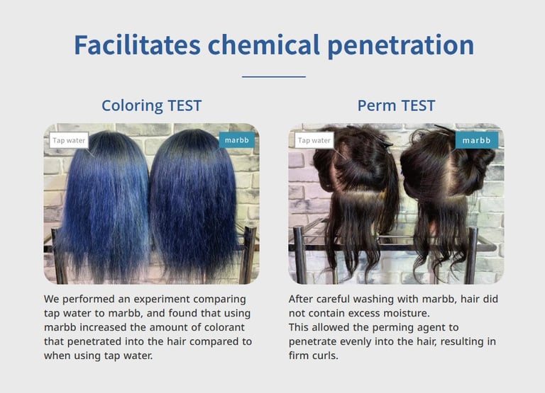 Hair washed with marbb barely drips even after a simple towel drying. Some users have reported a reduction in drying time of up to 35%. Shortening treatment time allows for more time to be devoted to customer service.